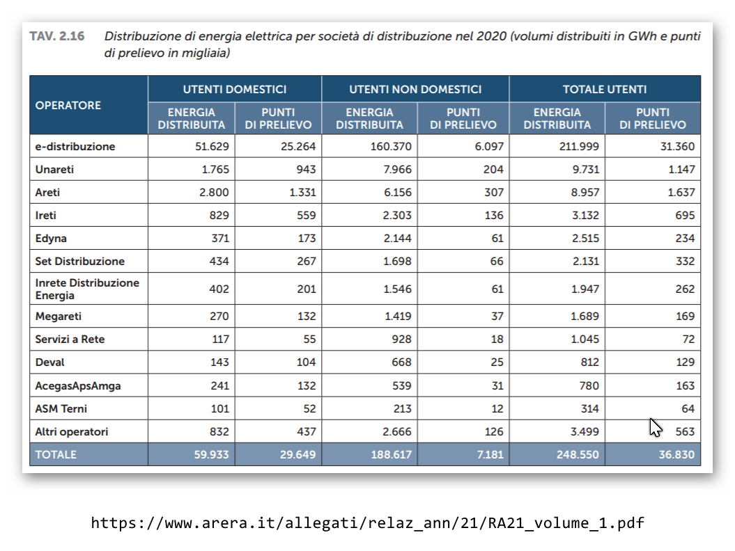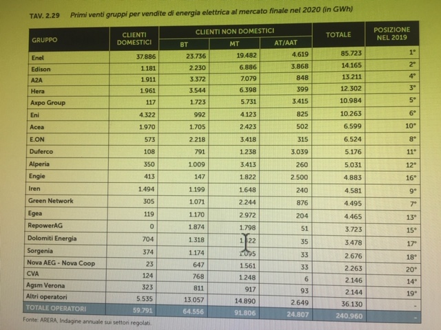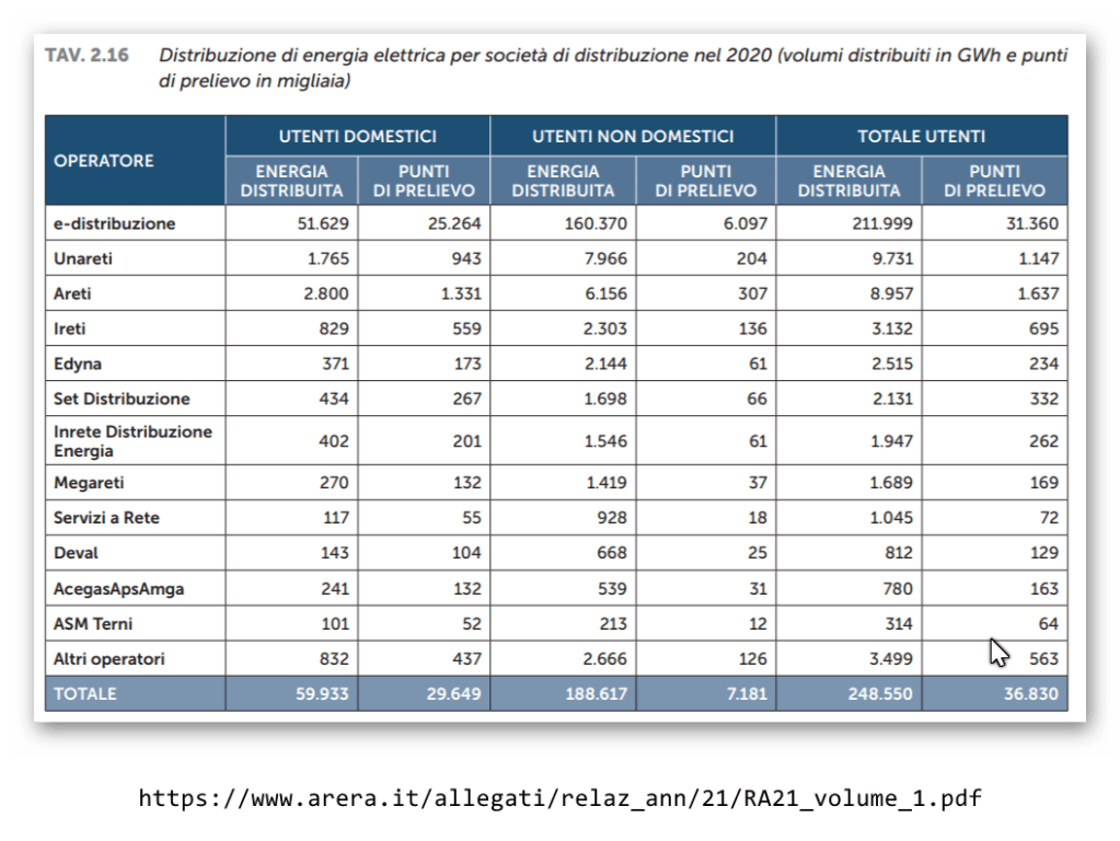 Trionfale, invece, il cammino dei distributori e, in particolare, di quello di proprietà di Enel – edistribuzione – che distribuisce e misura, più o meno, tutta l’energia elettrica nazionale.